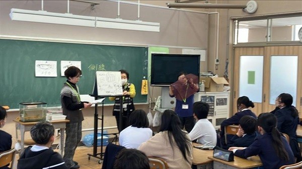 2/16(月)に、白木地区で「カワバタモロコ」という希少な魚を守る活動をされている方々に、出前授業をしていただきました。