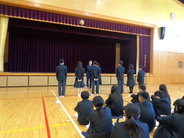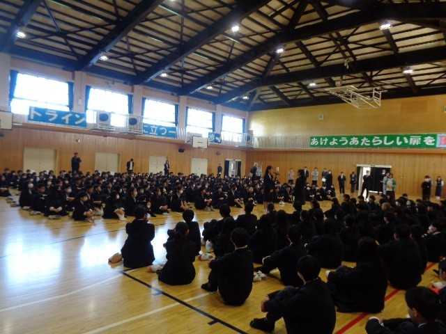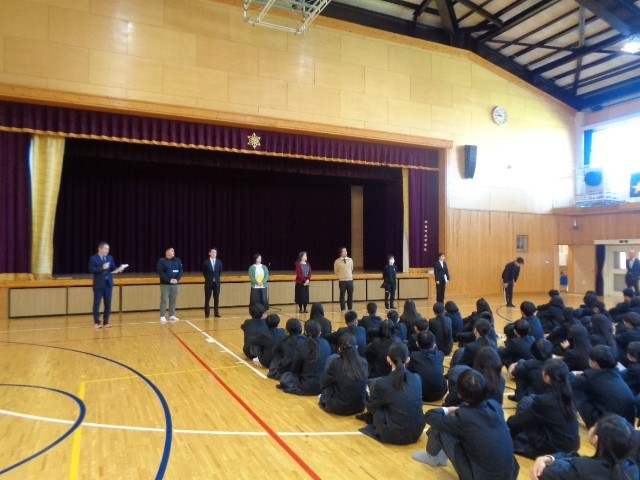 4月8日(水)、本校では、令和8年度始業式(赴任式・生徒会認証式・対面式)を体育館で行いました。