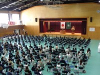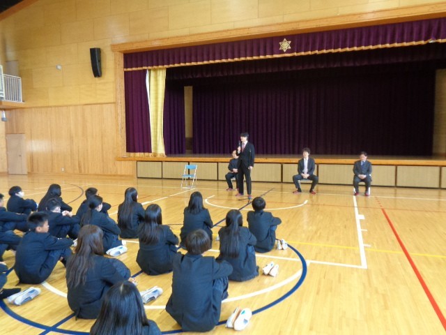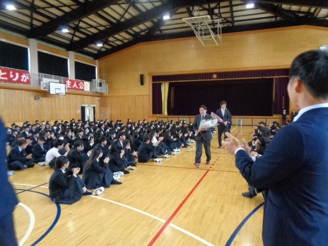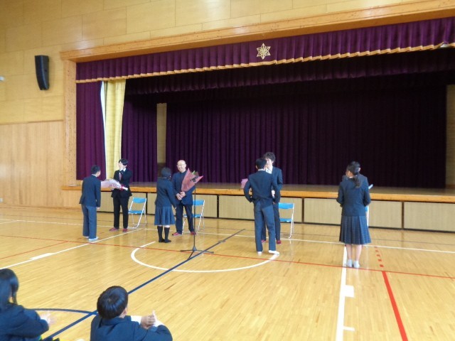 離任された先生方のうち、4名の先生が式に参加してくださりました。 当日は、全校生徒が体育館に集まり、感謝の気持ちを込めて先生方をお見送りしました。