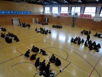 「このスローガンはみなさんのアンケートをもとに生徒会が話し合って決定しました。みなさんの団結と上をめざす気持ちを大事にしたいと思い、今流行のBling-Bang-Bang-Bornの曲にあてはめて考えました。このスローガンを心にとめて、みんなで体育大会にむけて頑張っていきましょう」生徒会より